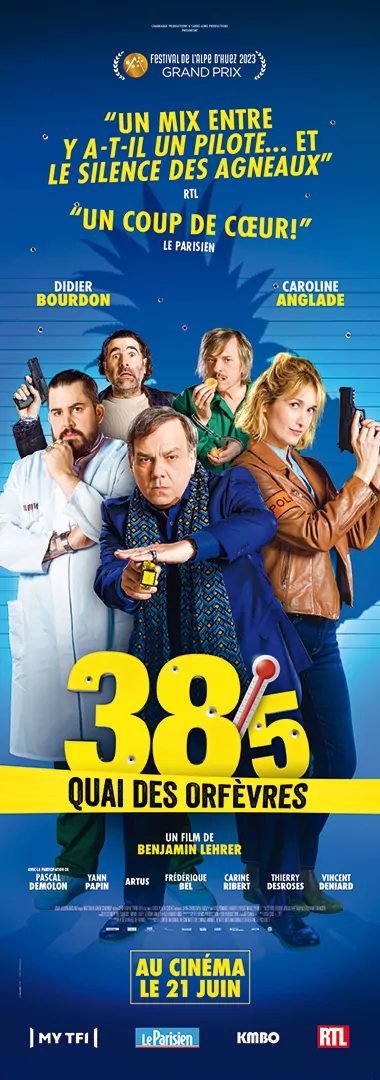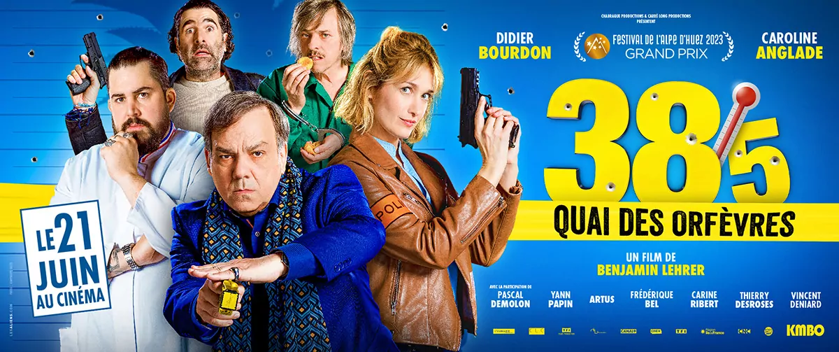 A l’affiche de 38°5 quai des Orfèvres, on retrouve notamment Didier Bourdon, Caroline Anglade, Artus. Un casting qu’il fallait mettre en avant, ainsi que les éléments d’une comédie policière.