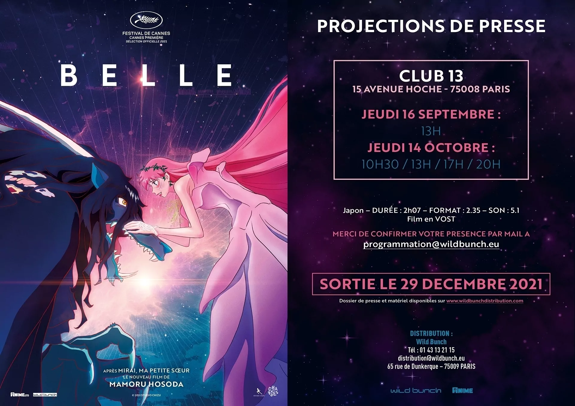 Willd Bunch et Anime Limited ont distribué en France le dernier film d’animation de Mamoru Hosoda, Belle. Un film présenté en avant-première mondiale lors du 74èmeFestival de Cannes dans la catégorie « Cannes Première ».