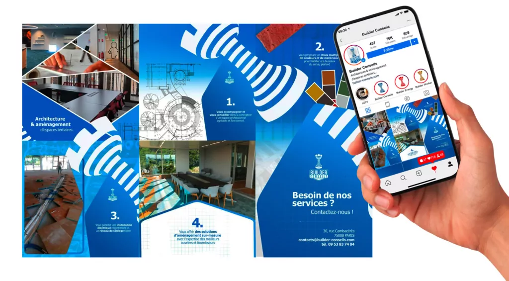 Notre mission : refonte du site Internet, création des réseaux sociaux BtoB – BtoC, shooting photo pour valoriser les chantiers prestigieux confiés à Builder Conseils.