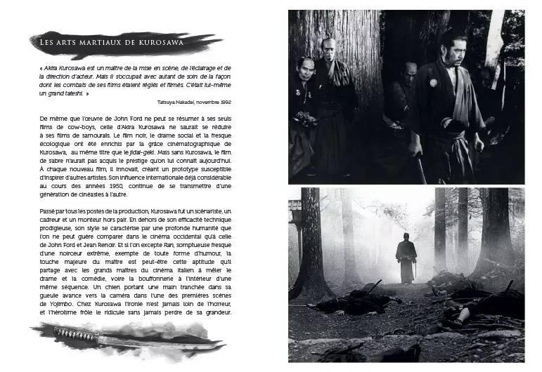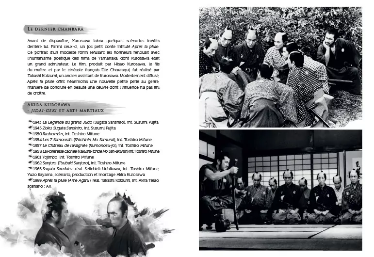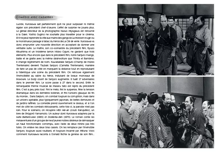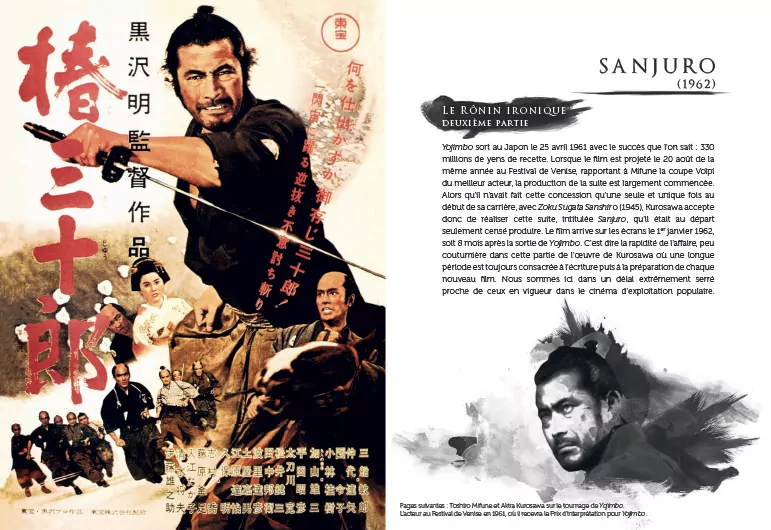 Pour Sanjuro, c’est un livret de 62 pages incluant une riche iconographie que nous avons mis en page. Quelques extraits :