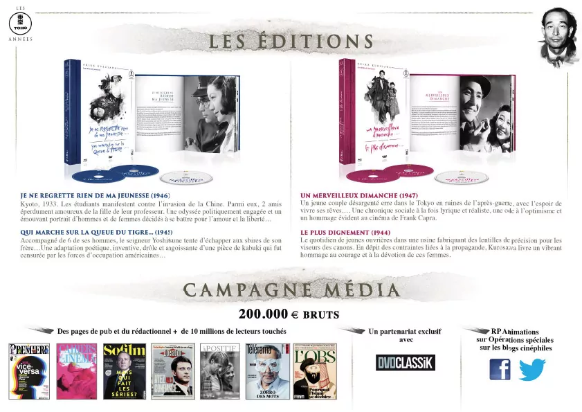 Pour chacun des coffret nos graphistes ont réalisé : la création du pack et du typon, mais aussi un livret très documenté, une newsletter, des formats insert presse et des vignettes VOD.