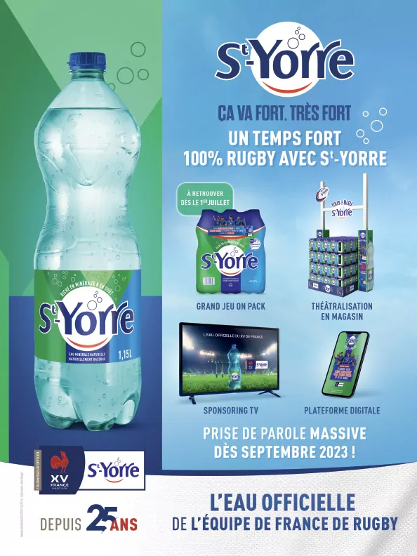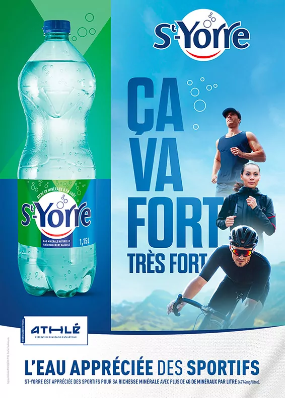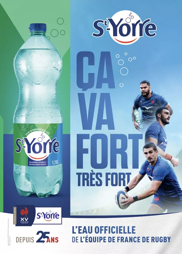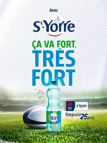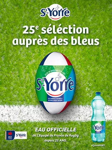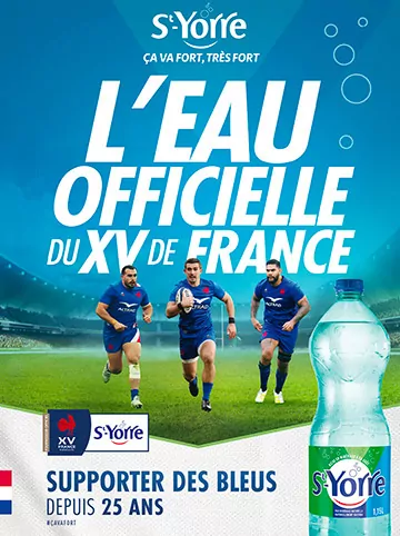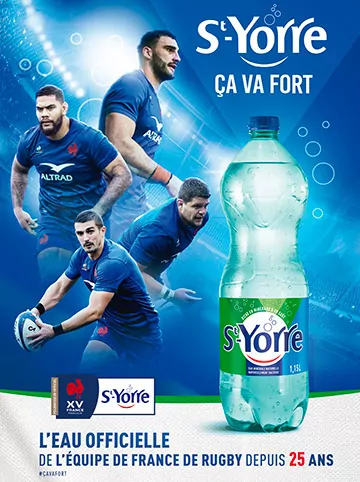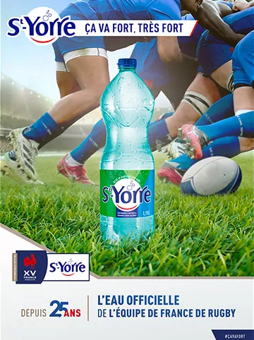 L’eau minérale SAINT-YORRE accompagne les sportifs depuis longtemps déjà : reconnue pour sa richesse en minéraux et notamment en sodium, SAINT-YORRE permet une bonne récupération après des efforts prolongés. La marque est également un partenaire de l’équipe de France de rugby depuis plus de 25 ans.