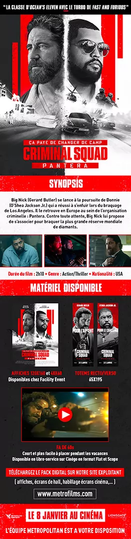 Voilà la suite de Criminal Squad sorti en salle début 2018. 7 ans plus tard, nouvelle confrontation entre Gerard BUTLER, O’shea JACKSON JR, alias Big Nick et Donnie. Nouveau braquage pour un film à sensations fortes.
