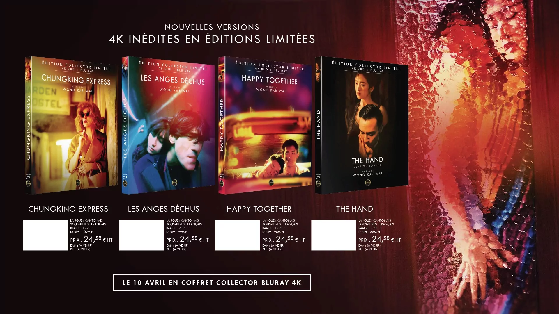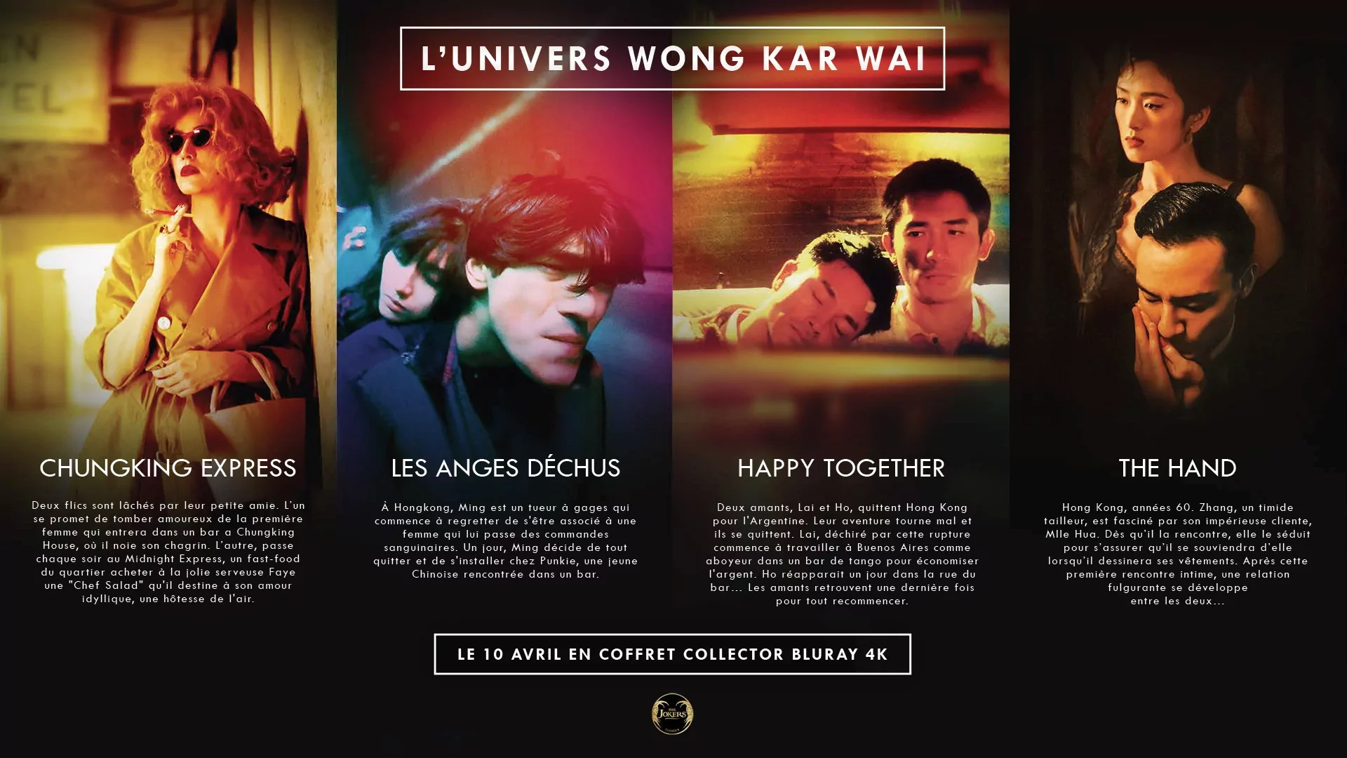 The Jokers Films nous a offert pour la fin d’année 2023, la ressortie de 4 films phare du réalisateur Hong-Kongais Wong Kar-Way : « Chungking Express » (1994), « Les anges déchus » (1995), « Happy Together » (1997) et « The Hand » (2004) dans des versions remastérisées.