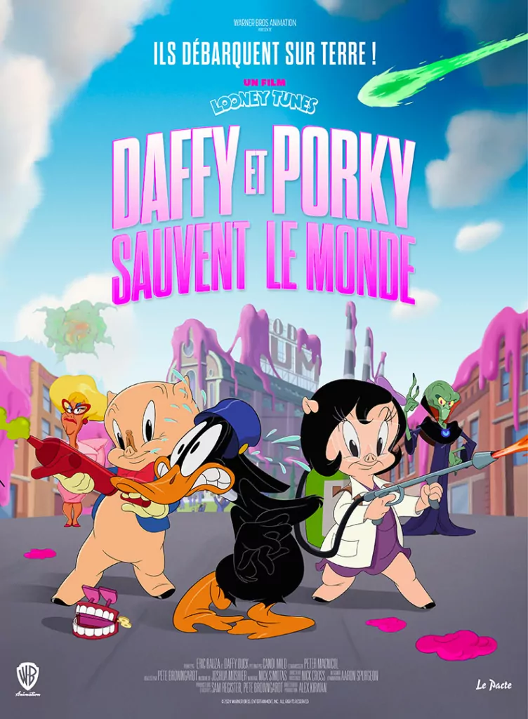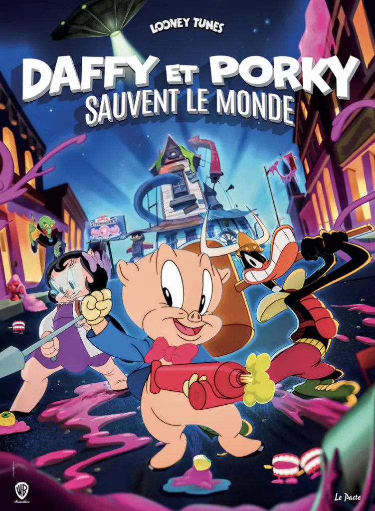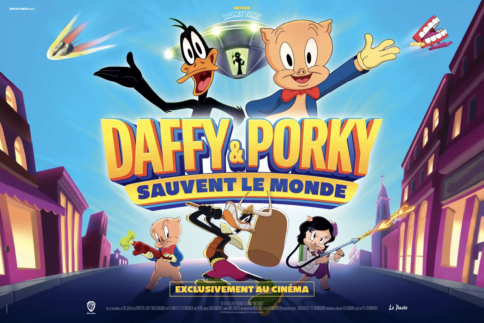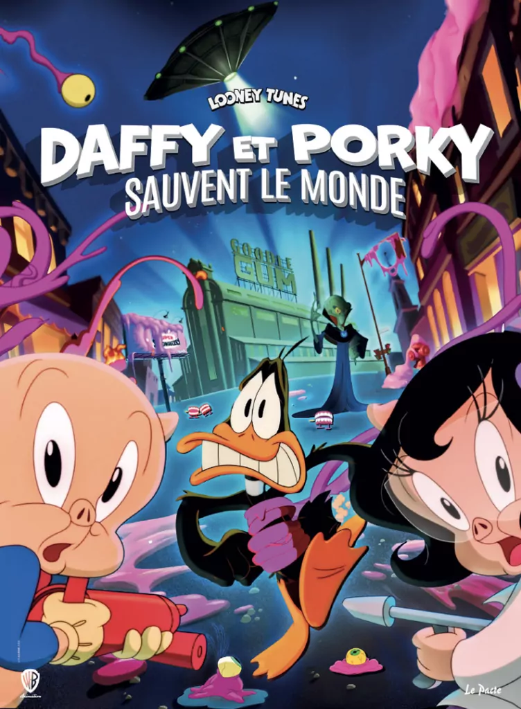 L’Agence LES ALIENS a créé pour LE PACTE l’affiche cinéma française du film d’animation « Daffy & Porky sauvent le monde« .