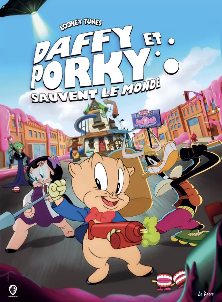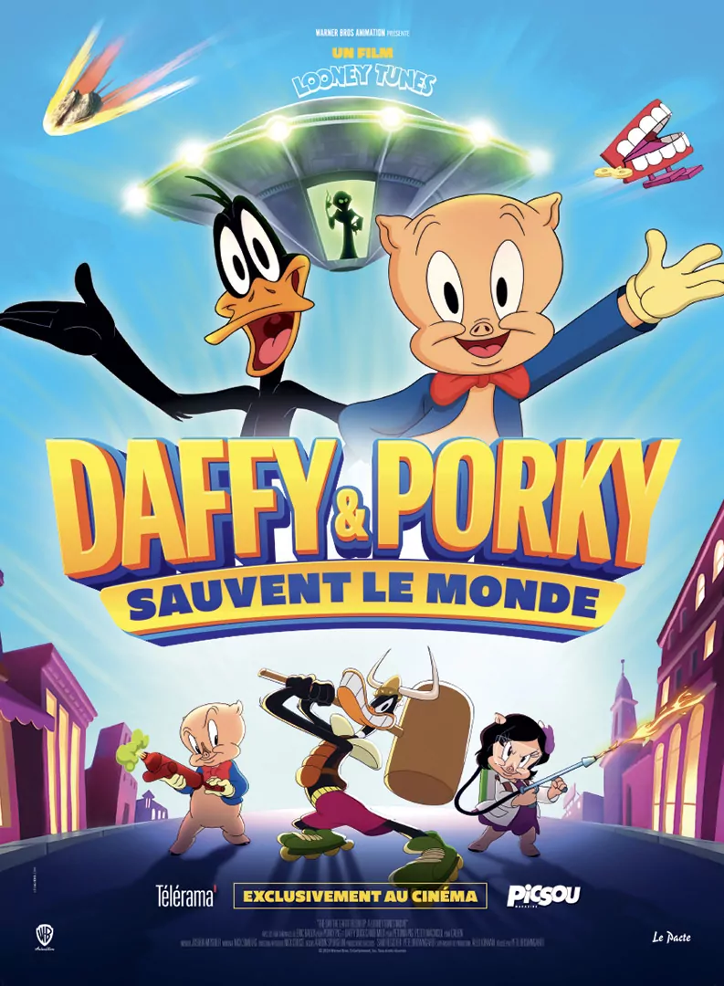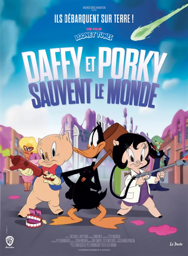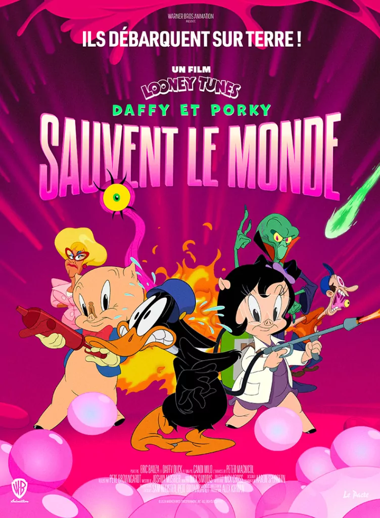 L’Agence LES ALIENS a créé pour LE PACTE l’affiche cinéma française du film d’animation « Daffy & Porky sauvent le monde« .