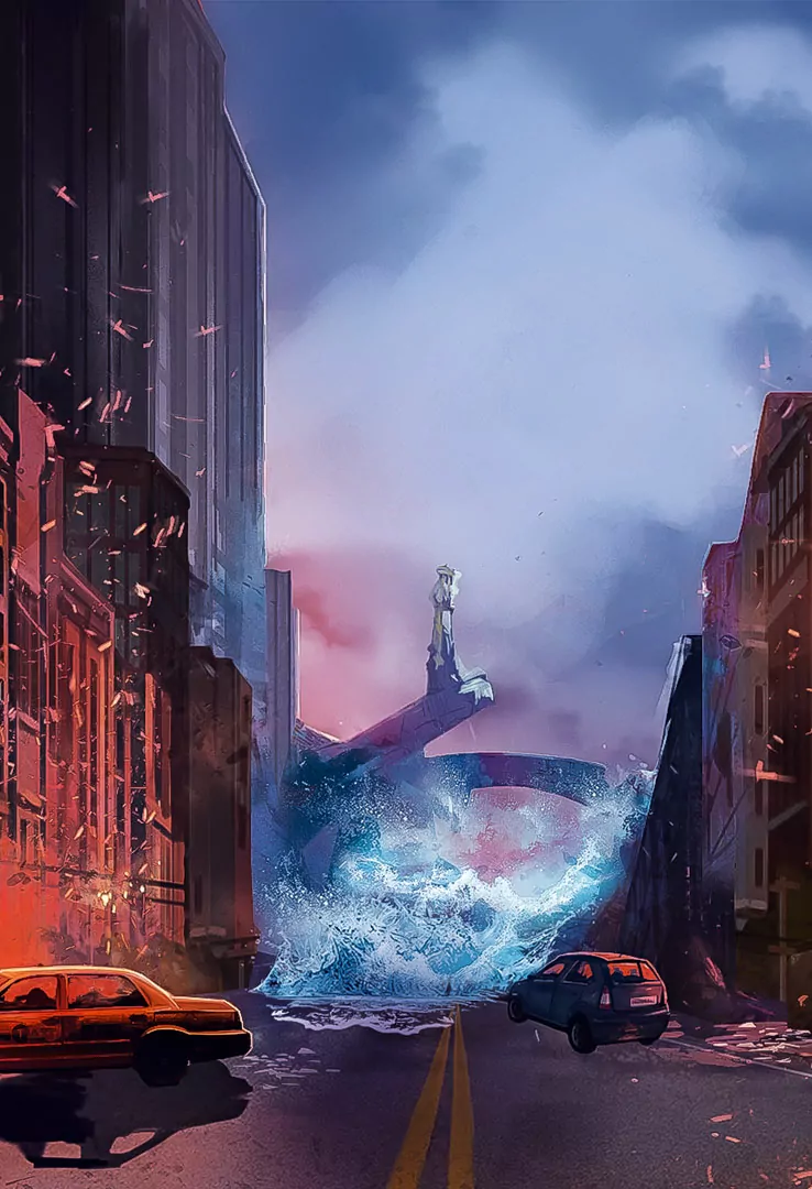 Très vite les recherches se sont limitées à deux pistes principales : une version « combattants » qui met en scène une humanité au combat et une version qui met en avants les dangers qui nous menacent. Avec de nombreux tâtonnements …