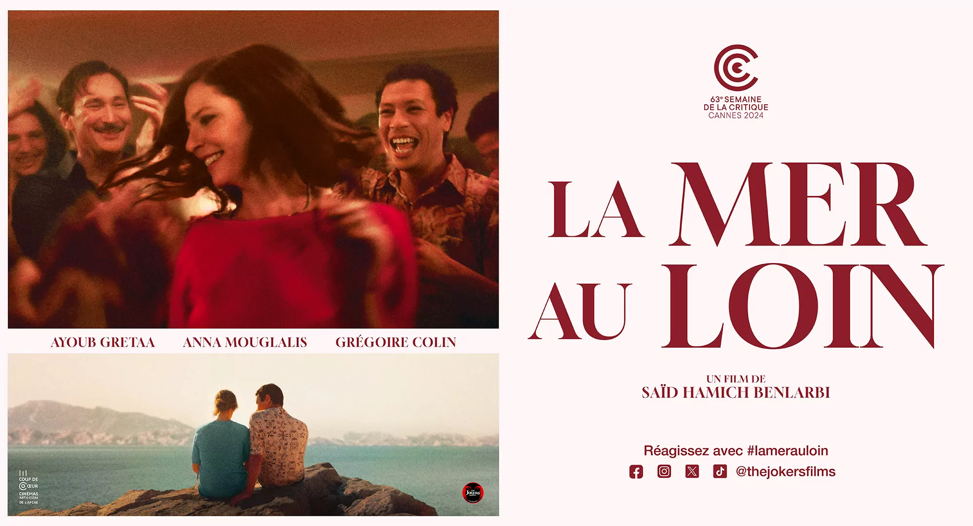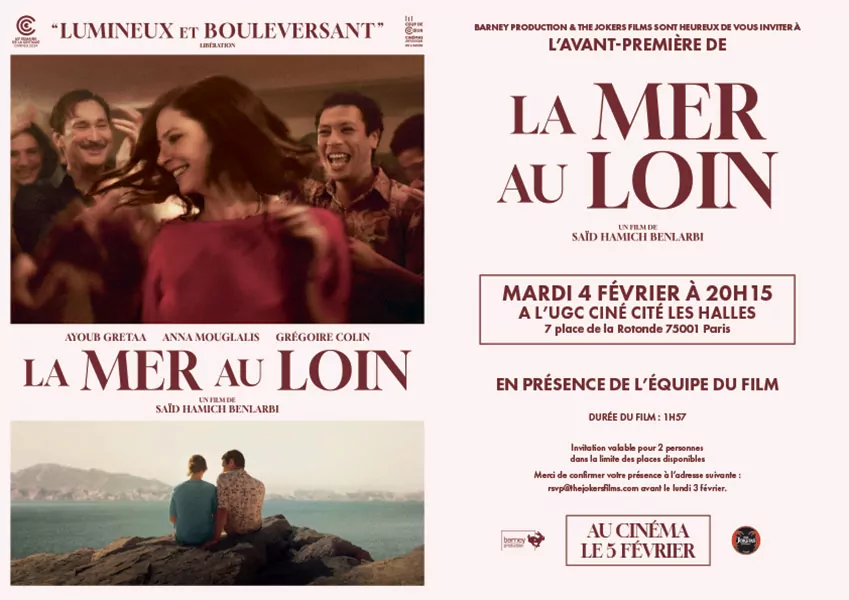L’agence LES ALIENS a créée l’affiche officielle pour la sortie en France du film LA MER AU LOIN. Retour dans les années 90, à Marseille, au temps de l’apogée du RaÎ , une musique qui rythme le quotidien des personnages. Un film qui parle de l’exil, sur un temps long et donne à voir la construction du personnage exilé, à la façon d’un roman d’apprentissage. Nos graphistes ont pu proposer de nombreuses pistes créatives, dont nous vous partageons quelques maquettes. THE JOKERS FILMS a distribué le film en février 2025.