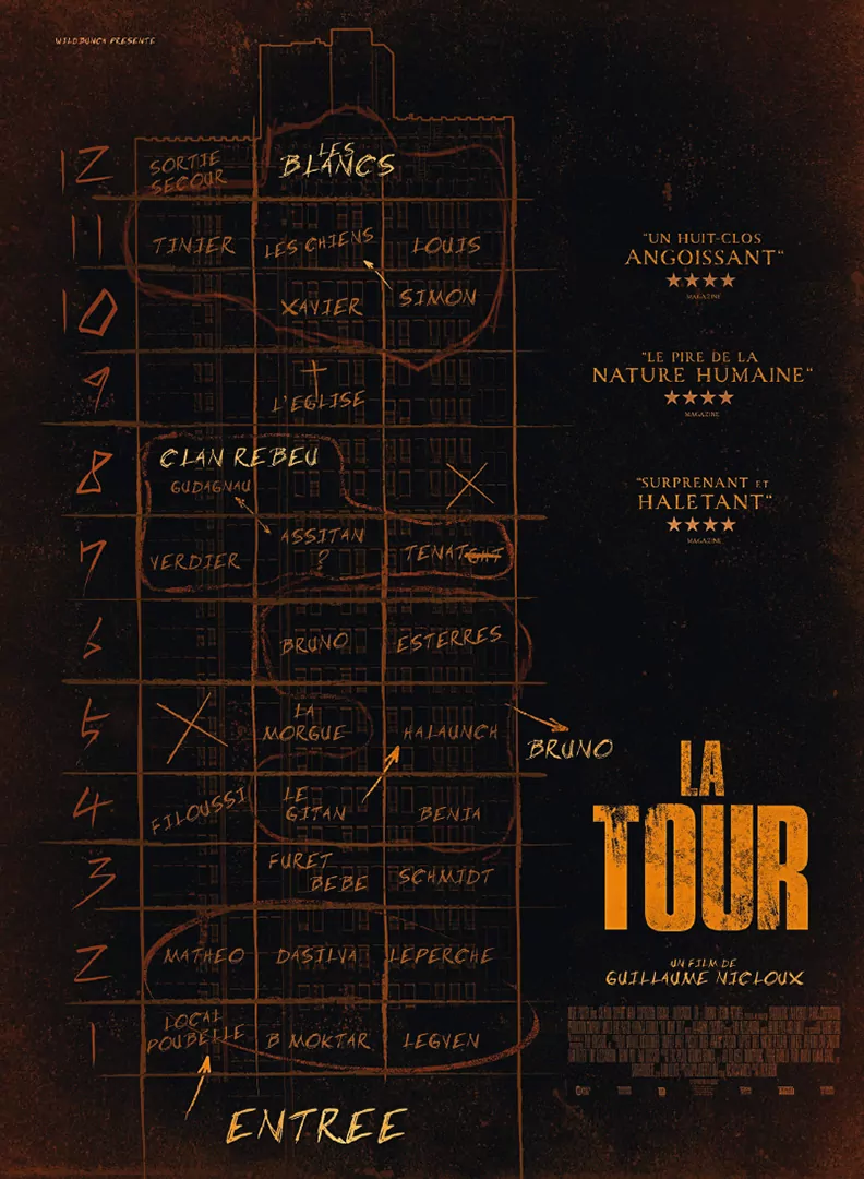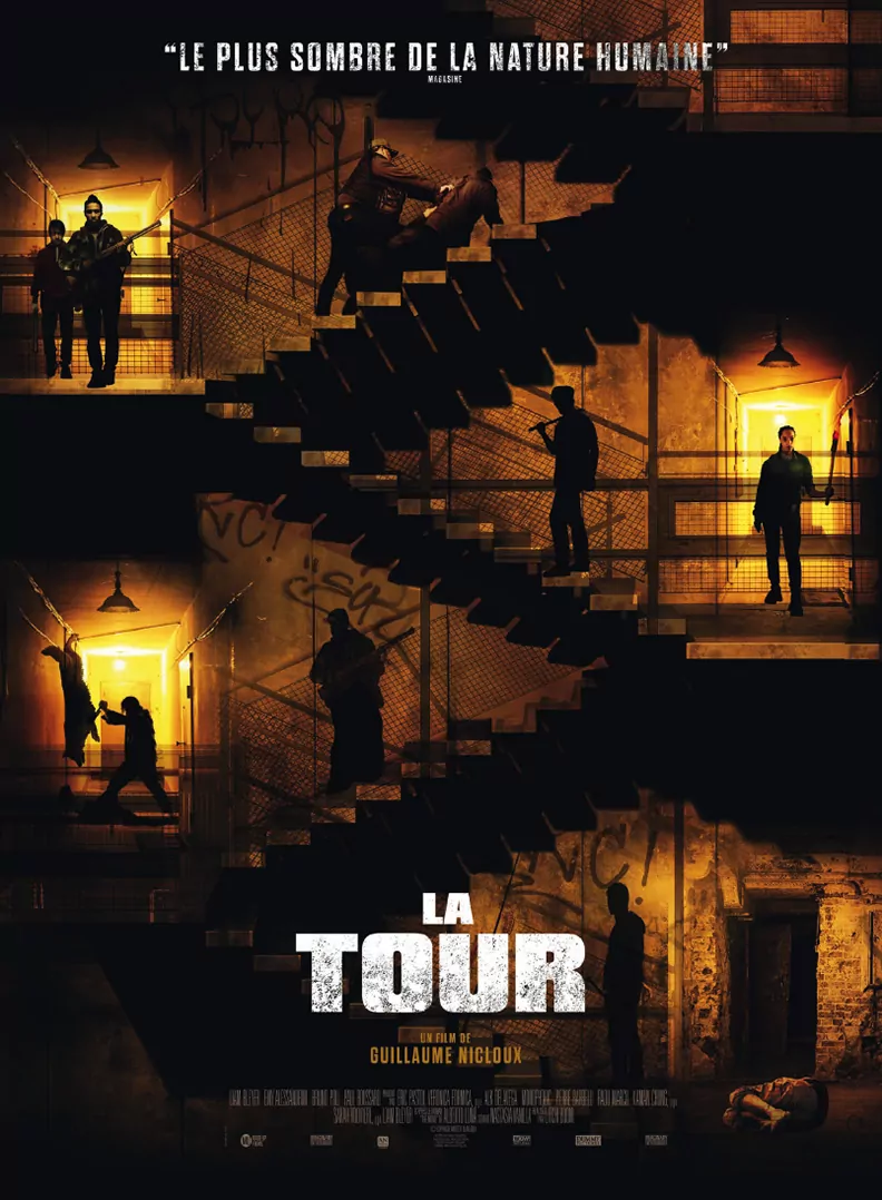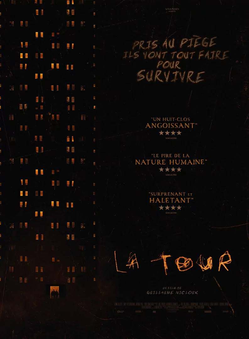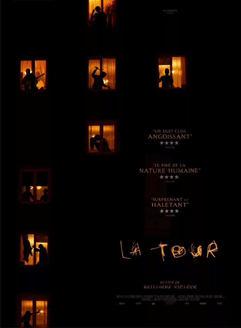 Du coup, pour l’affiche de ce film de Guillaume Nicloux, nos directeurs de création, de connivence avec l’équipe marketing du distributeur, Wild Bunch, ont testé des versions avec le casting mais rapidemment la verticalité imposante et angoissante de la tour s’est imposée. Et l’idée de dévoiler des scénettes du film en ombres chinoises… tout en conservant les codes visuels du genre.