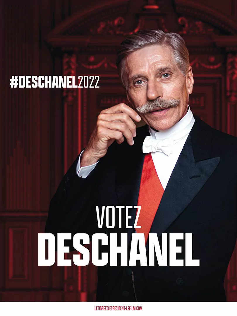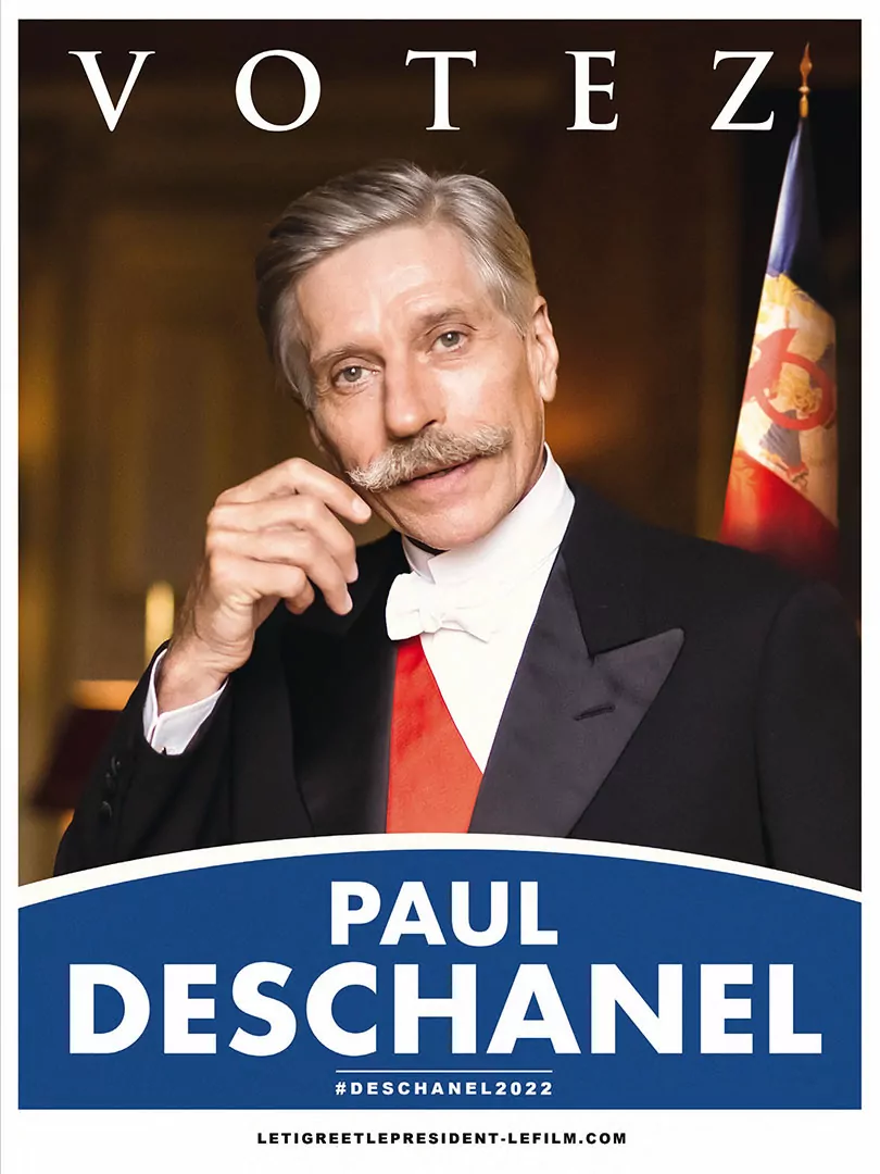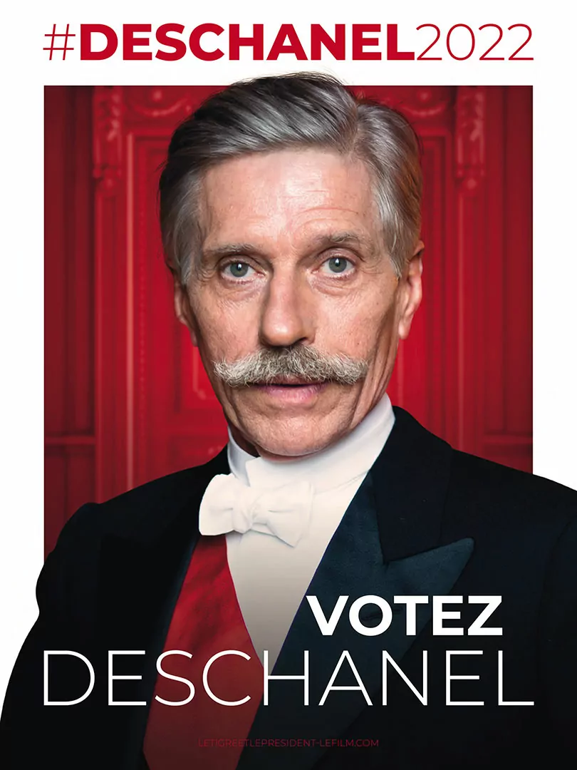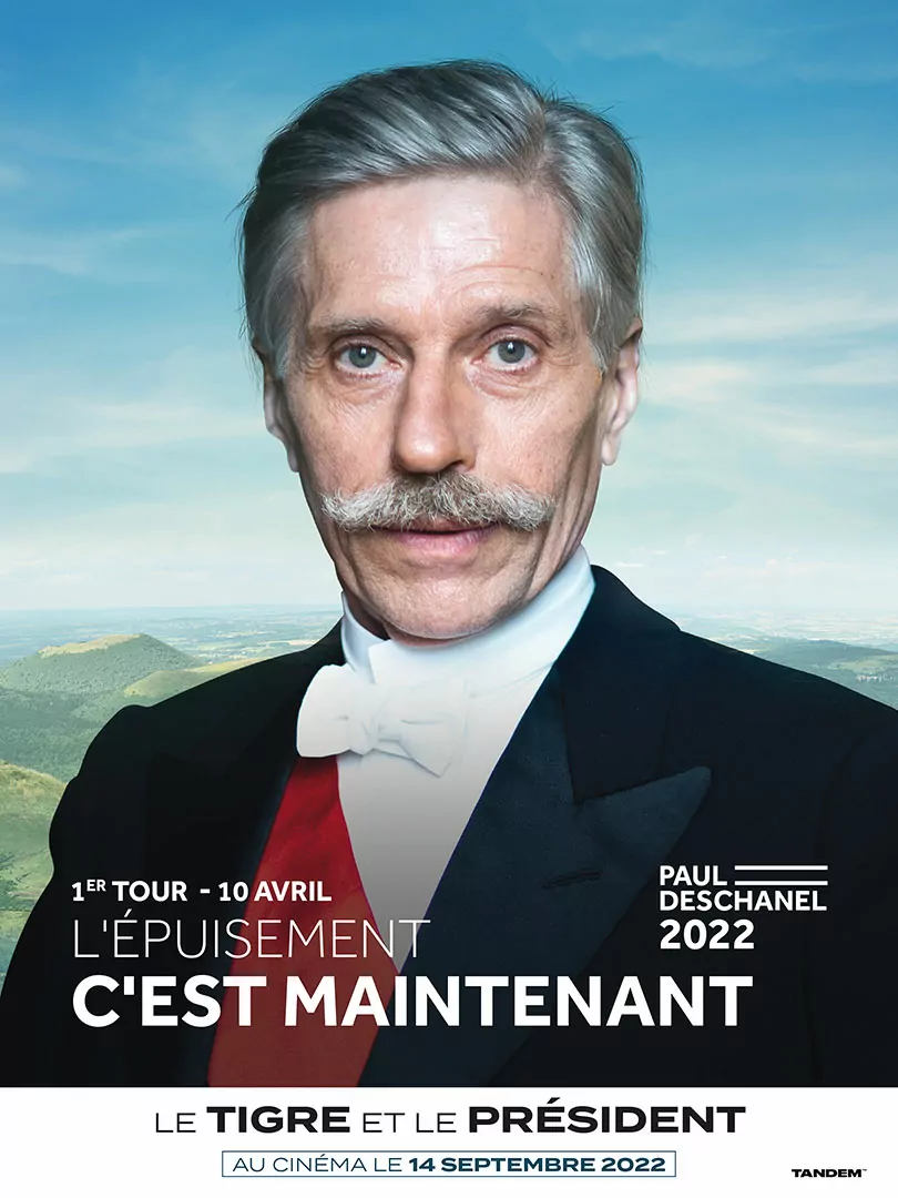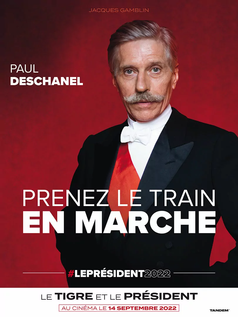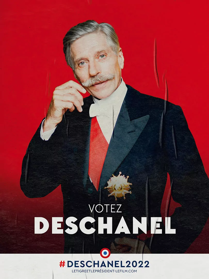 Affiche cinéma du film Le Tigre et le Président - distribution Tandem Films - création affiche Agence Les Aliens - affiche préventive, "Deschanel"