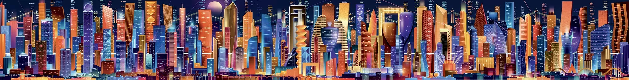 Nos graphistes ont créé une immense frise, complexe, très très détaillée pour garantir l’unicité de chaque étiquette. En haute définition pour autoriser des zooms importants. Nous voulions créer un paysage urbain onirique proposant d’infinies variations chromatiques. Il ne pouvait pas évoquer une ville existante…