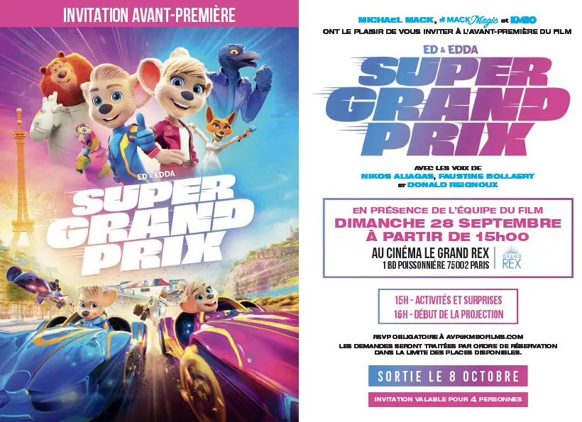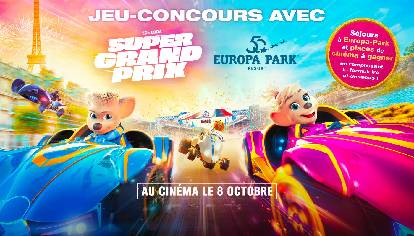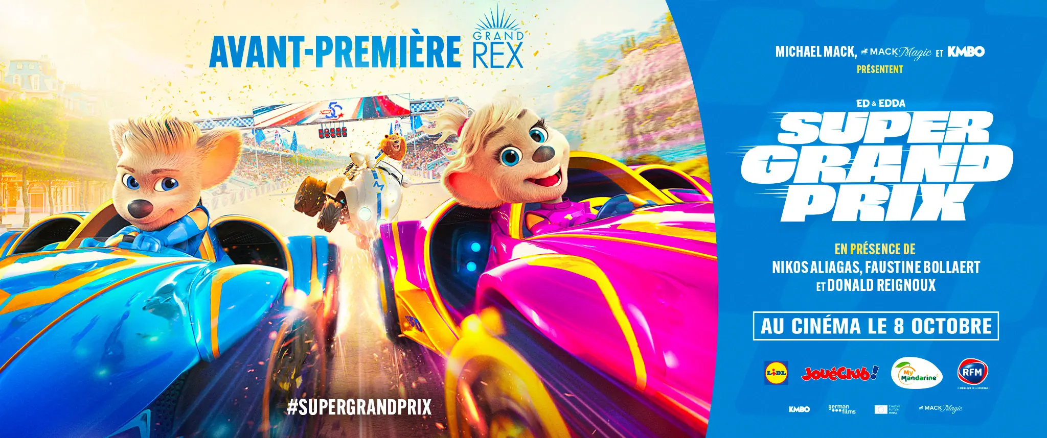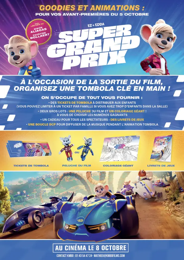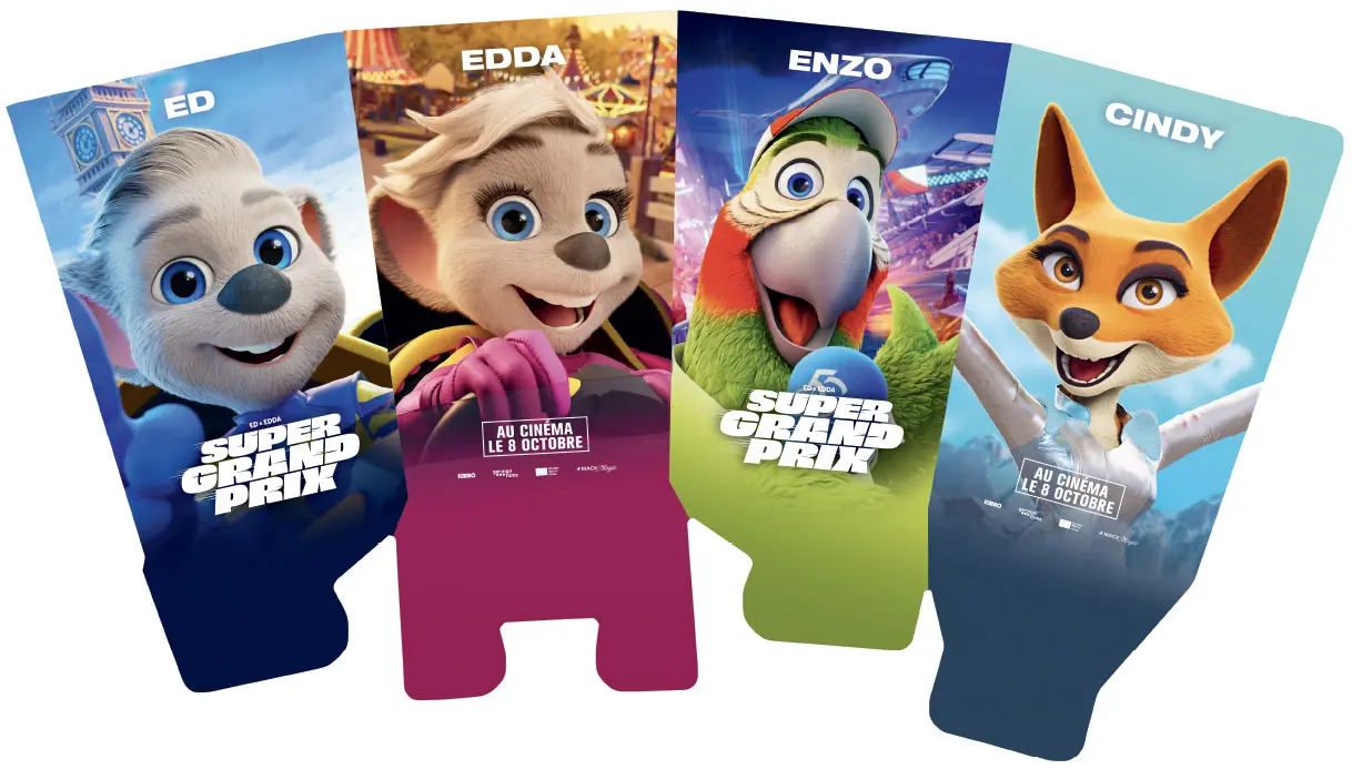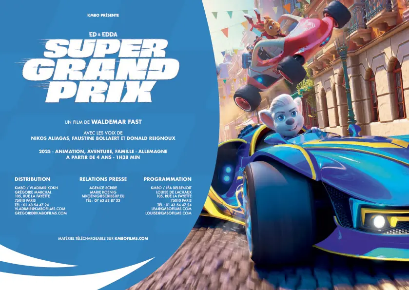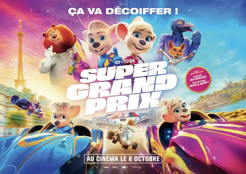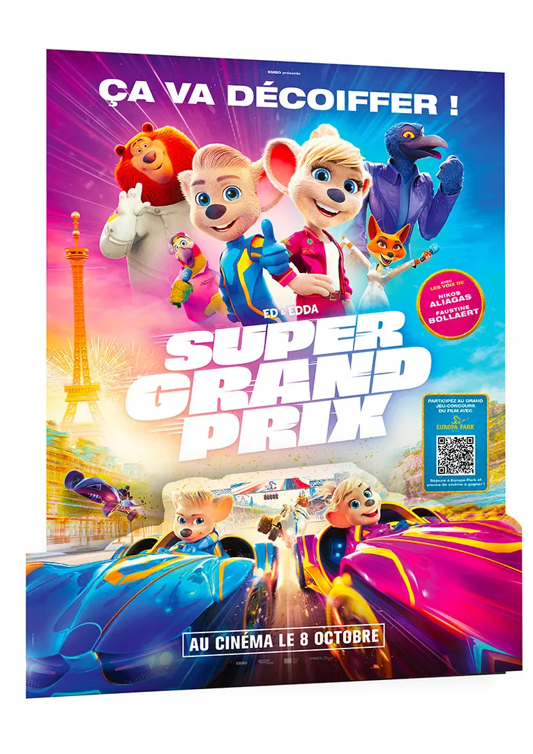 Affiche cinéma officielle pour la sortie en France du film d'animation SUPER GRAND PRIX, créée par l'Agence LES ALIENS.