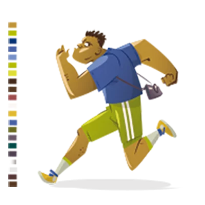 Notre mission, que nous avons acceptée (avec joie) : – imaginer un univers graphique en cohérence avec les précédents Jeux Dujardin, composé d’illustrations de couleurs vives, et de personnages en action;