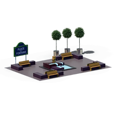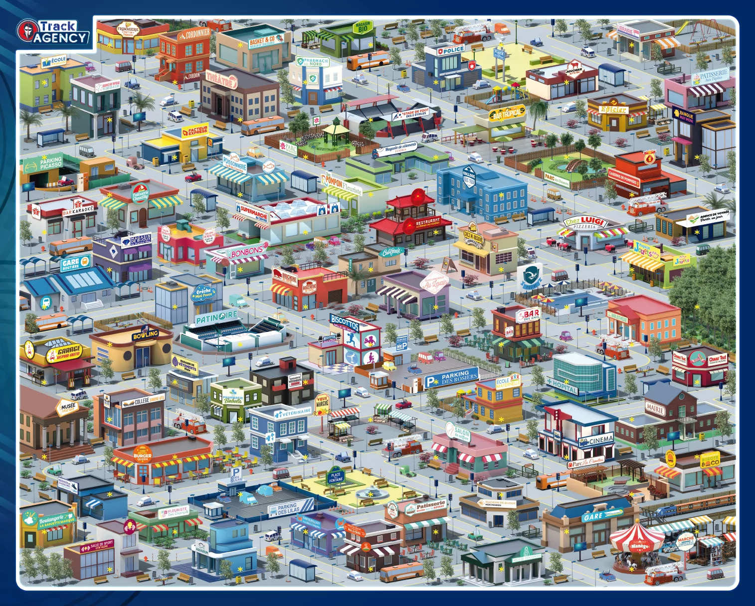 – créer une carte format A2 représentant tout une ville avec 80 lieux différents, tout en 3D, et ses décors;