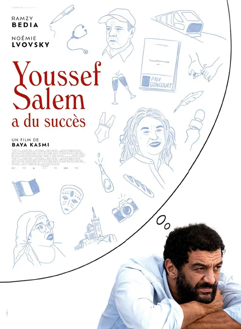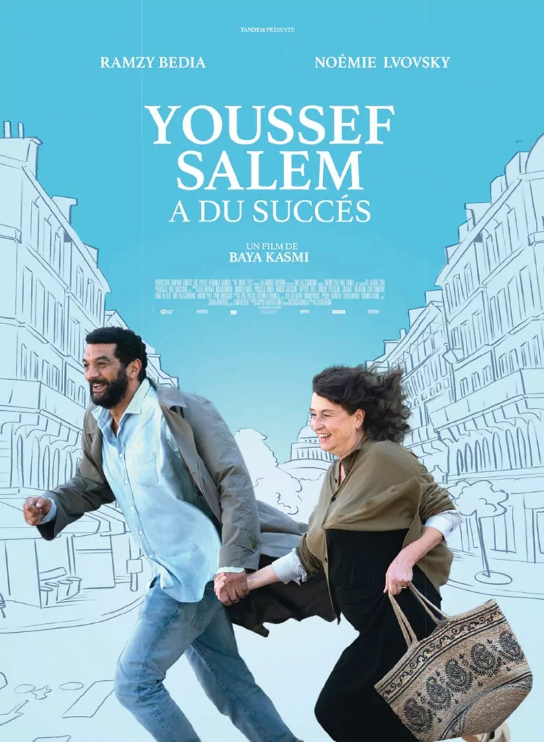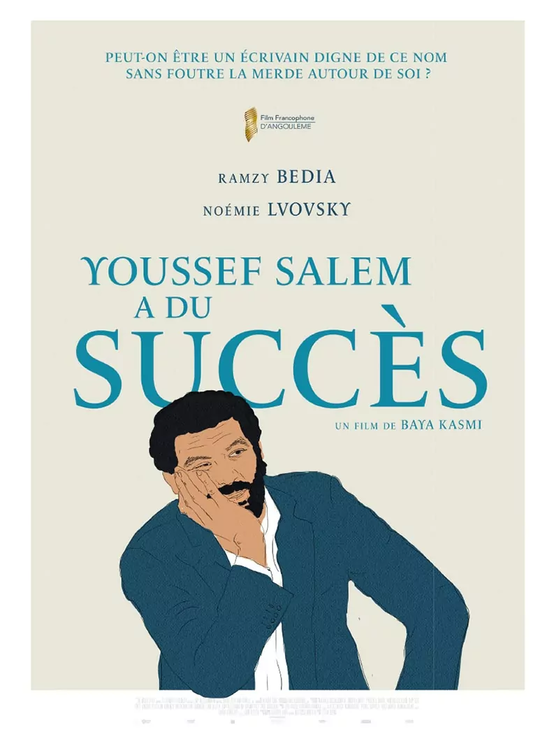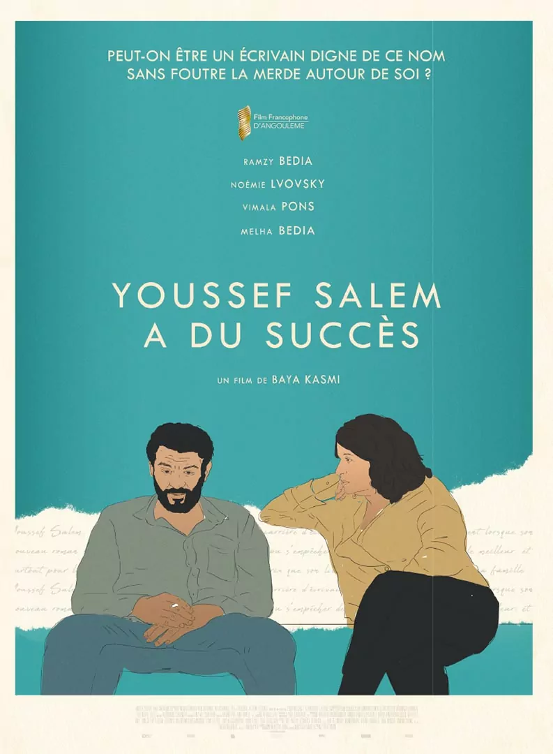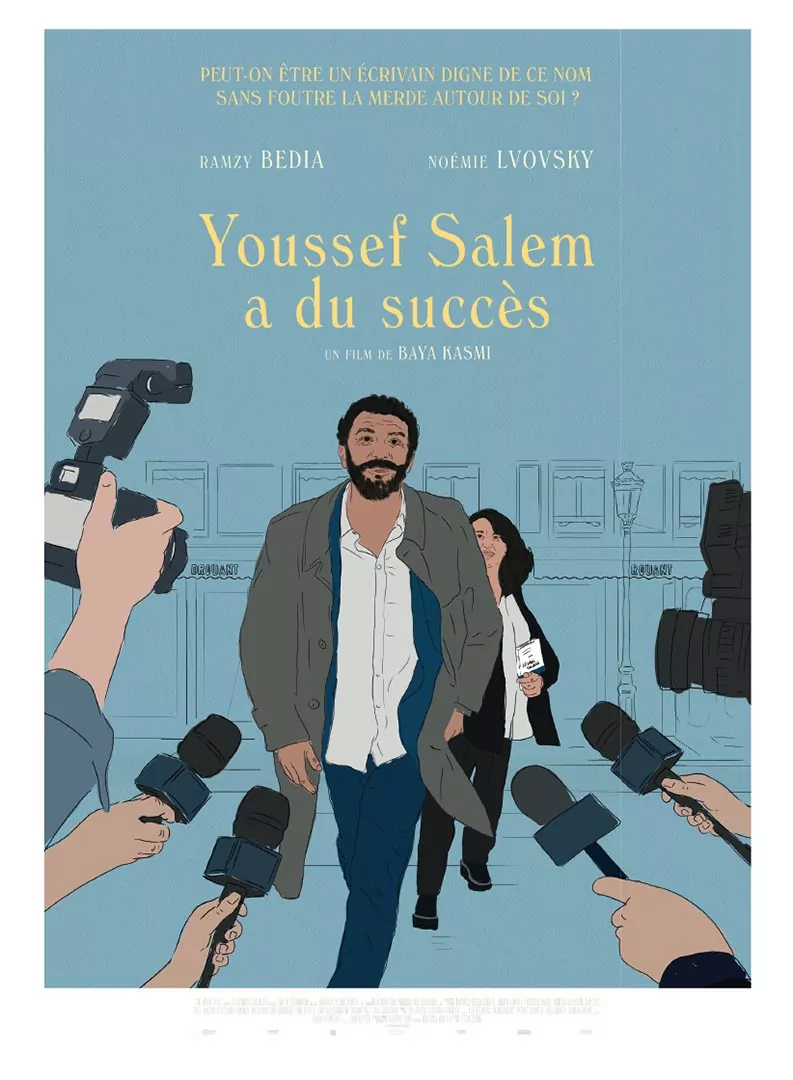 Pour le film Youssef Salem a du succès on a une tête d’affiche, Ramzi, – absolument brillant dans le rôle d’ailleurs – habituée des comédies populaires pour un film positionné « comédie d’auteur ». L’équipe marketing de Tandem a demandé aux directeurs de création de l’agence Les Aliens de travailler sur ce positionnement. Nos graphistes ont donc essayé des pistes avec des illustrations – par petites touches ou en total look – pour l’inscrire dans une filiation bien identifiée de comédies d’auteurs et de films indé américains.