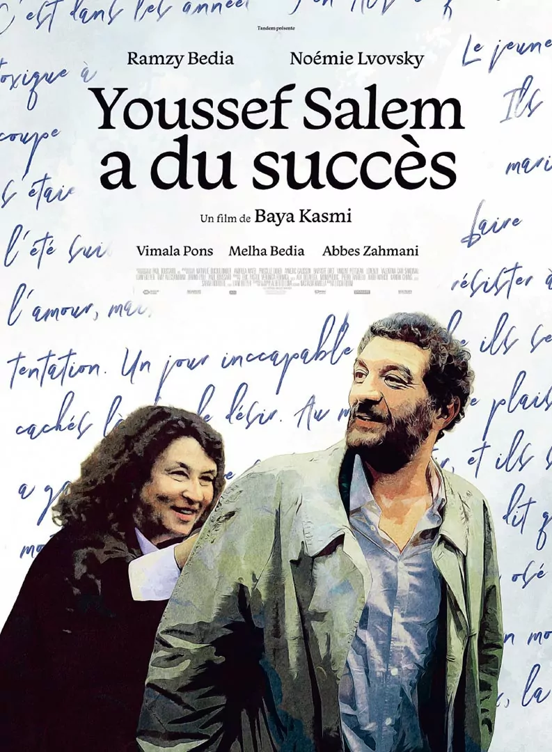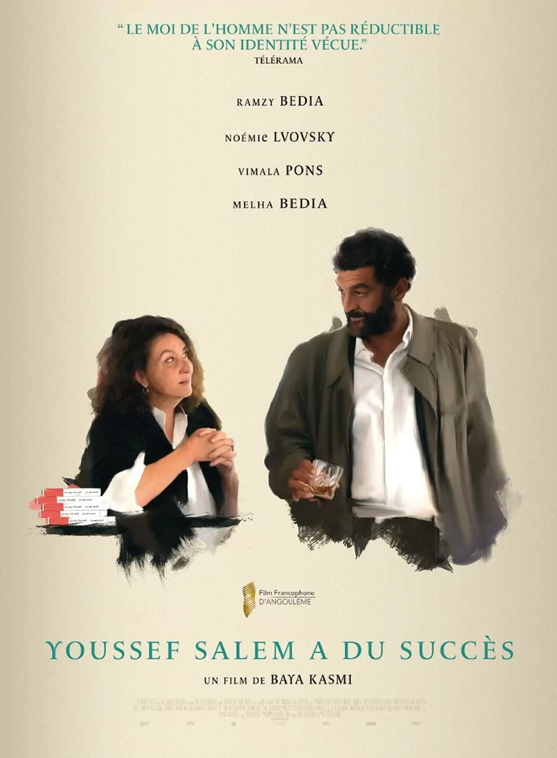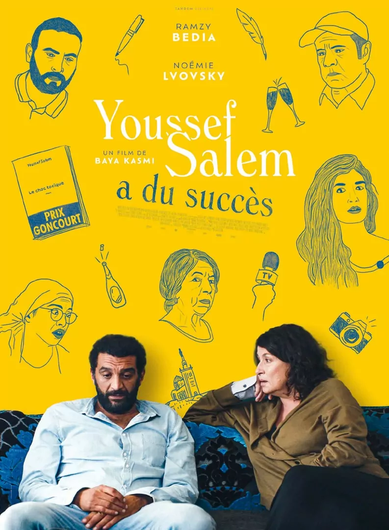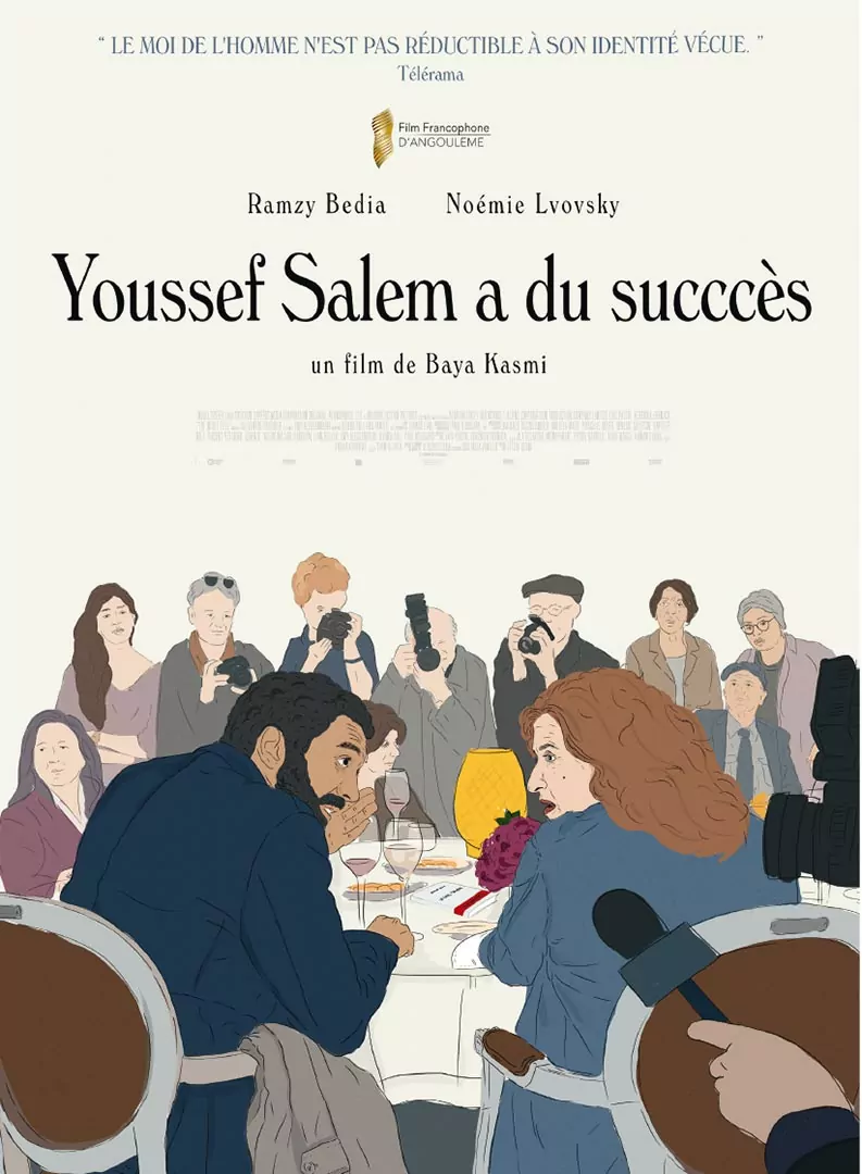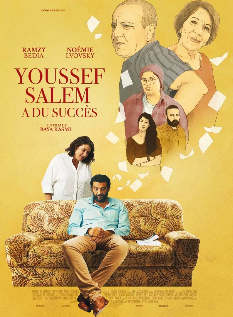 Pour le film Youssef Salem a du succès on a une tête d’affiche, Ramzi, – absolument brillant dans le rôle d’ailleurs – habituée des comédies populaires pour un film positionné « comédie d’auteur ». L’équipe marketing de Tandem a demandé aux directeurs de création de l’agence Les Aliens de travailler sur ce positionnement. Nos graphistes ont donc essayé des pistes avec des illustrations – par petites touches ou en total look – pour l’inscrire dans une filiation bien identifiée de comédies d’auteurs et de films indé américains.